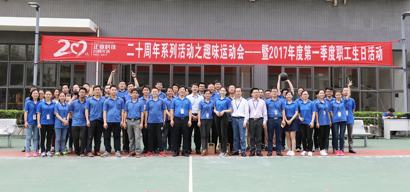 2017年4月8日,廣東正業(yè)科技股份有限公司盛大舉辦了二十周年系列活動(dòng)之趣味運(yùn)動(dòng)會(huì)暨2017年度職工生日活動(dòng),公司董事長(zhǎng)徐地華先生等公司高層管理人員和所有員工參加了趣味運(yùn)動(dòng)會(huì)。