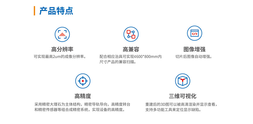 可離線針對產品感興趣的位置進行掃描成像、三維重建后,搭配可視化分析軟件進行分析測量,用于過程品質管控、失效分析,實驗室研究等。讓產品在不被破壞的情況下,就能輕松知道內部結構及缺陷情況,并能對它們進行測量分析。
